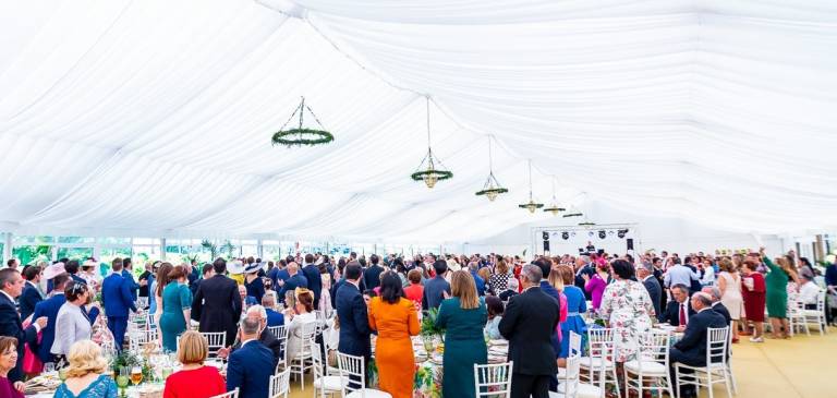• Una vez terminado el cóctel, los comensales pasaron a la zona del salón, una carpa perfectamente acondicionada en la que no faltaba un detalle.